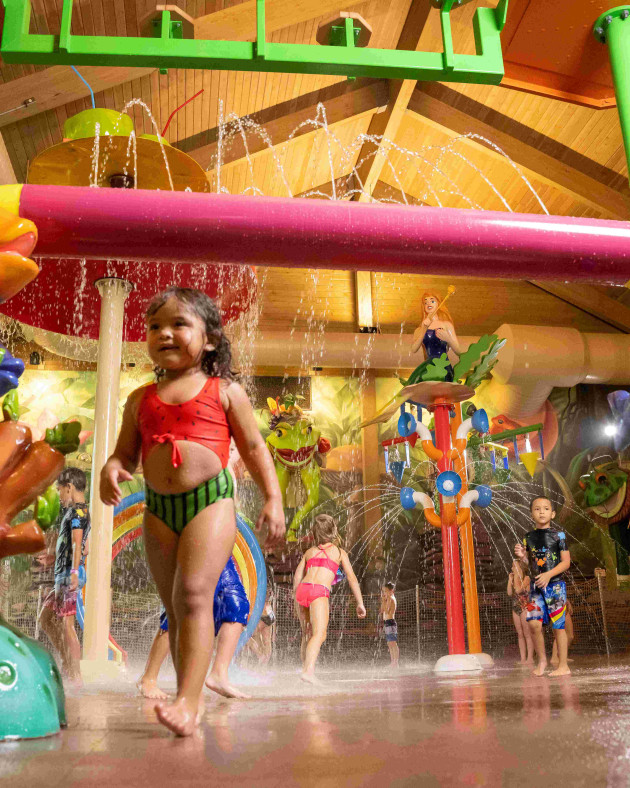 Consistently ranked as one of the top indoor water parks by USA Today’s 10Best, Splash Lagoon Indoor Water Park Resort is a year-round tropical escape where families race down thrilling slides, catch waves in a giant pool, or get soaked under a giant tipping coconut. It’s a water park escape that can turn a quiet day into a lively party.